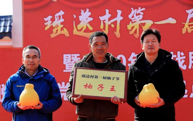 嘉宾为“柚子王”(中)颁奖(谭凯兴 摄)