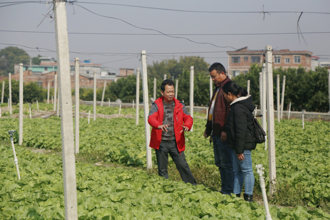 技术人员在对露地栽培的蔬菜进行现场指导