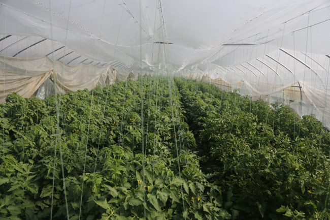 蔬菜大棚内的蕃茄长势喜人