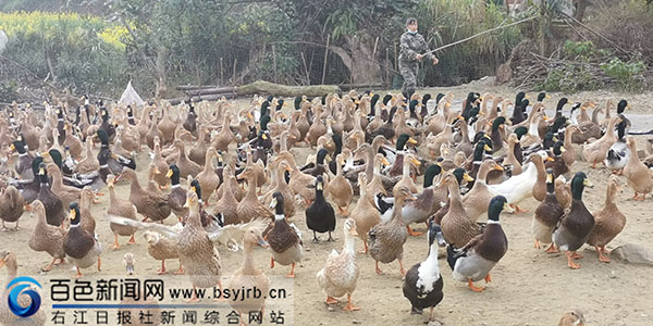 图为西林县八达镇那卡村养殖场里的麻鸭