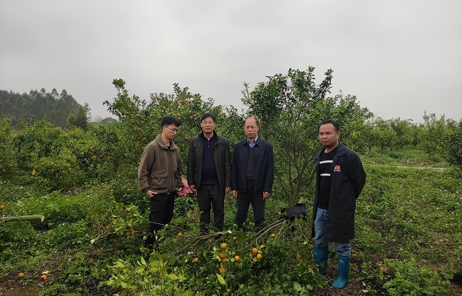 柑橘园调研病树清除情况