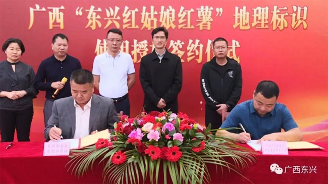 东兴市授权广西伊范园农业科技有限责任公司使用东兴“红姑娘”红薯地理标志产品标识,并在市农业农村水利局指导下建立东兴市脱毒种苗基地,为群众提供脱毒种苗,将有力地促进“东兴红姑娘红薯”地理标志基地化建设、标准化生产、产业化经营和品牌化运作,推动“东兴红姑娘红薯”保护和县域特色优势产业提档升级和农民持续增收相融合,为实现兴边富民打好基础、推动乡村产业兴旺发挥积极作用。