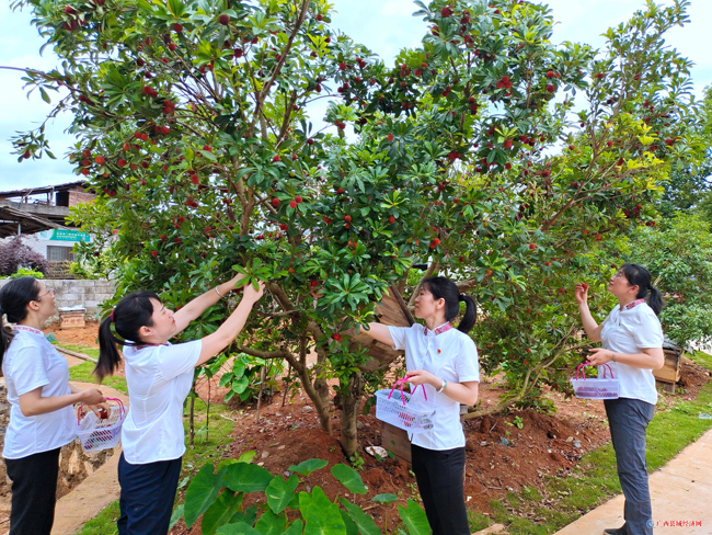 图为游客在恭城镇门楼村采摘杨梅