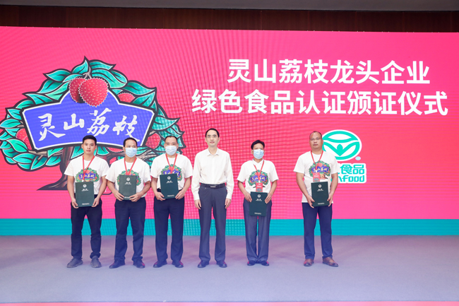 食以安为先,食品安全是重中之重。作为区域公用品牌,更要从源头上保障食品安全。为保证灵山荔枝的安全品质,政府与企业上下齐心,狠抓落实,累计已有29家荔枝生产企业获得了绿色食品认证。发布会现场还为首批获得绿色食品认证的企业专门举行了颁证仪式。中国绿色食品发展中心主任张华荣为广西农垦新光农场有限公司,灵山县百灵湖水果种植专业合作社、广西灵山千年农业科技有限公司、灵山县业旺水果种植专业合作社、灵山县万兴荔枝种植专业合作社5家企业代表,颁发了绿色食品认证证书。有了绿色认证的安全保障,灵山荔枝产业才会更扎实、更长久。