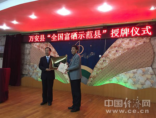 万安县土壤足硒面积1673平方公里、富硒面积280平方公里,境内农业龙头企业建立了10多个特色富硒农产品生产基地,开发出了富硒大米、富硒茶叶、富硒蔬菜、富硒水果(井冈蜜柚、金丝小红枣)等特色富硒农产品,产品销往全国各地。万安县还建成了江西省富硒大米标准化生产示范区。