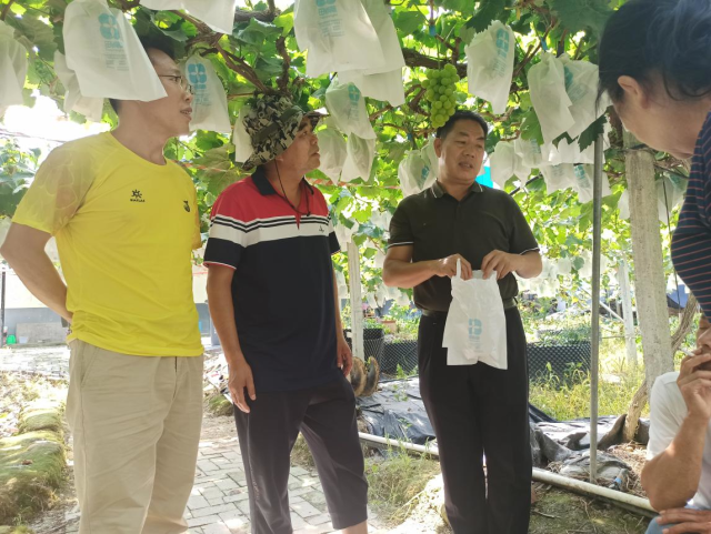 桂林市农业农村局三级调研员何祖任(左二)到临桂区调研葡萄产销情况