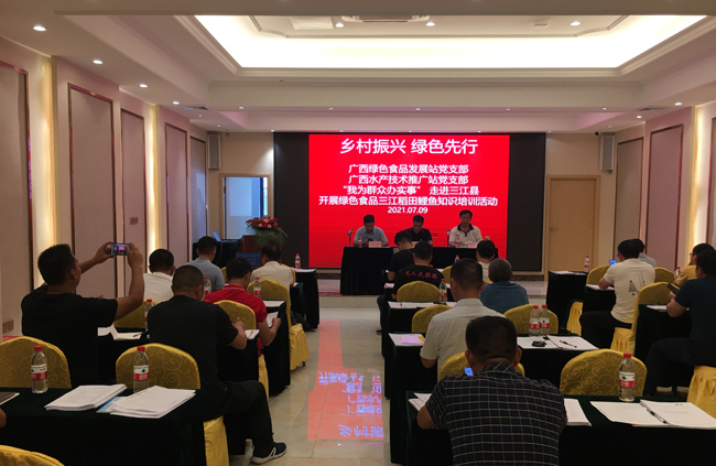 为推进“地理标志+绿色食品”发挥品牌叠加效应,助力三江稻田鲤鱼整县推进绿色食品标志许可,7月9日,应三江侗族自治县农业农村局邀请,广西绿色食品发展站、广西水产技术推广站组织党员专家,赴三江县为三江稻田鲤鱼绿色食品知识培训班授课。三江县15个乡镇的20家农产品生产、加工企业、农业农村局相关人员共30人参加培训。
