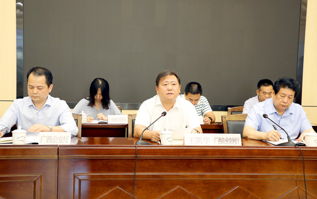 近日,广西食用农产品“治违禁 控药残 促提升”三年行动部署视频会议在自治区农业农村厅召开。自治区农业农村厅党组成员、副厅长王凯学,自治区市场监管局二级巡视员骆佳生,自治区公安厅治安总队有关负责人在会上讲话。
