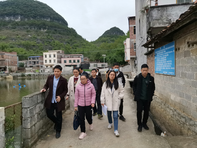 图为自治区农业农村厅验收组桂林市农业农村局安监科余艳娟组长(左三)一行进行实地考核