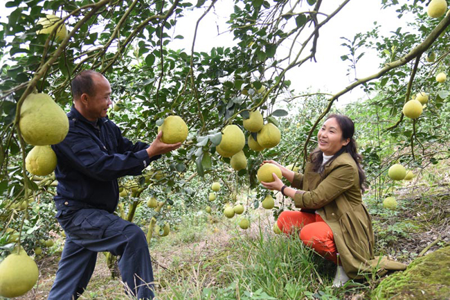近年来,鹿寨县稳步推进“优果工程”建设,除了沙田柚种植,还引进了红肉蜜柚、三红蜜柚等优良新品种,进一步优化品种结构,满足市场多元化需求。同时,开展柚子产业发展共性关键技术攻关,坚持实施测土配方施肥、有机肥替代化肥、病虫害生物防控、果园留草覆盖等措施,把荒坡山变成花果山,让柚子果成为群众的“黄金果”“小康果”“幸福果”。目前,全县水果种植面积达30多万亩,年产值15亿元以上,不断实现经济、致富、生态、社会四大效应的统一。