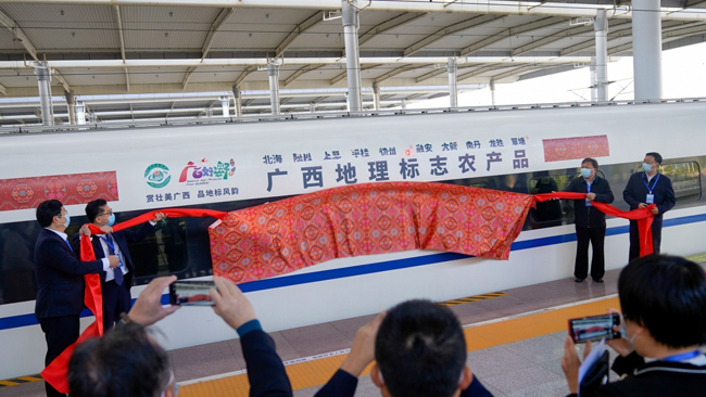 王凯学表示,启动和开通地理标志农产品高铁专列,是2021年广西地理标志农产品保护工程品牌建设的重要举措之一,旨在助力广西地理标志农产品走向千家万户、推动广西特色农产品深入人心。他说,地理标志农产品是重要的农业知识产权和区域公用品牌,多年来,广西大力实施地理标志农产品保护工程,围绕全面推进乡村振兴加快农业农村现代化这一目标要求,创培了一大批全国地理标志和地方特色产业品牌。地理标志农产品不仅要产出来、管出来,更要讲出来、卖出来,通过有特色、有文化、有故事的广西地理标志农产品,使广西现代特色农业获得更好的推介和发展,助力广西全面推进乡村振兴。