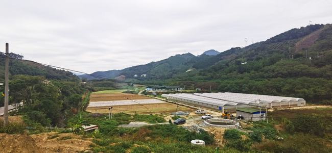 图为大棚蔬菜种植基地全景