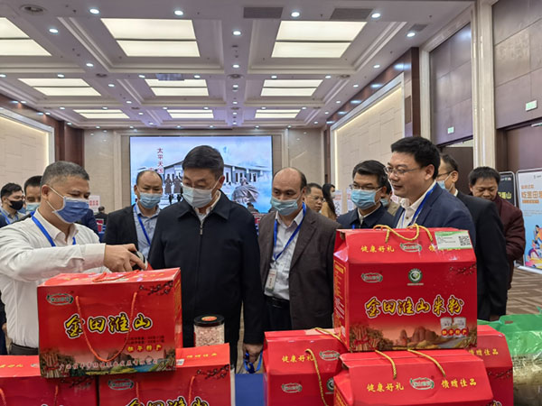 2022年1月6日,由自治区农业农村厅、贵港市人民政府指导,中共桂平市委员会、桂平市人民政府、贵港市农业农村局主办的“桂平·金田淮山公用品牌新闻发布会暨明星产品推介会”在南宁国际会展中心举行。农业农村部原总农艺师孙中华,广西壮族自治区农业农村厅巡视员郭绪全,市场信息处处长韦斌华,绿色食品发展站书记梁自力,桂平市委副书记、市长黄德佳,贵港市农业农村局副局长刘桓铭,桂平市委常委、副市长陆曙汉出席参加发布会及系列活动。
