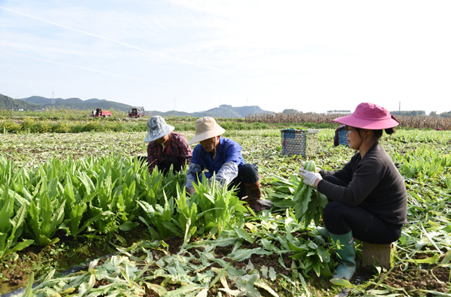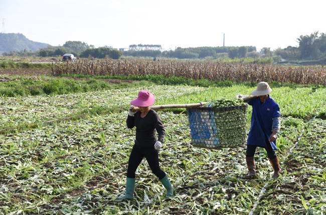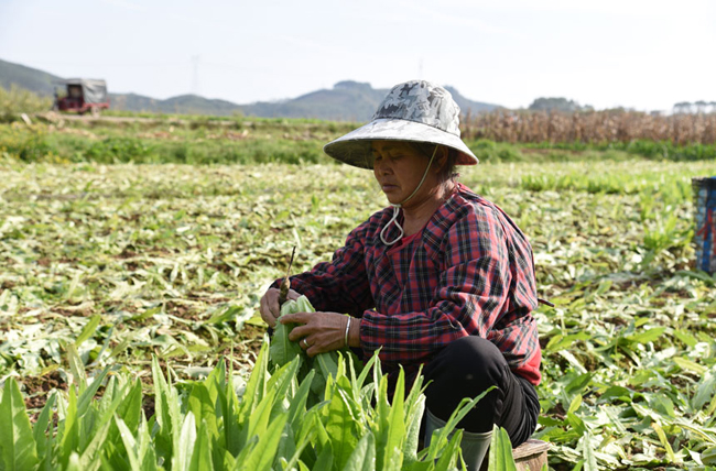 除了江口乡六合村韦应梅之外,江口乡丹竹村的村民们同样尝到种植蔬菜的甜头。当天,走进丹竹村,放眼望去,蔬菜田里绿浪翻滚,长势喜人,菜农们正忙着收割青菜。近年来,该村不断调整优化产业结构,引导群众发展“短、平、快”的特色蔬菜种植产业,凭借循环间作的种植模式,不但提高了土地利用率,还进一步增加了群众收入。鹿寨县江口乡丹竹村村民委员会委员叶春海说:“我们村蔬菜种植面积大概有800多亩,年蔬菜产量大概有400多万斤,产值大概有400多万元。接下来,我们打算引进知名企业规模发展蔬菜产业,实现种、收、销一条龙产业模式,进一步增加群众收入。”