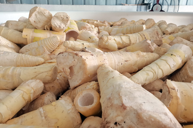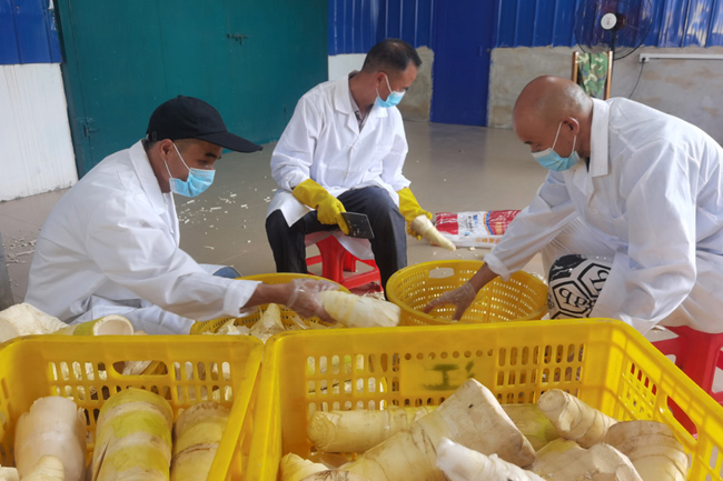 拉沟乡关江竹笋加工厂正在加工鲜竹笋。