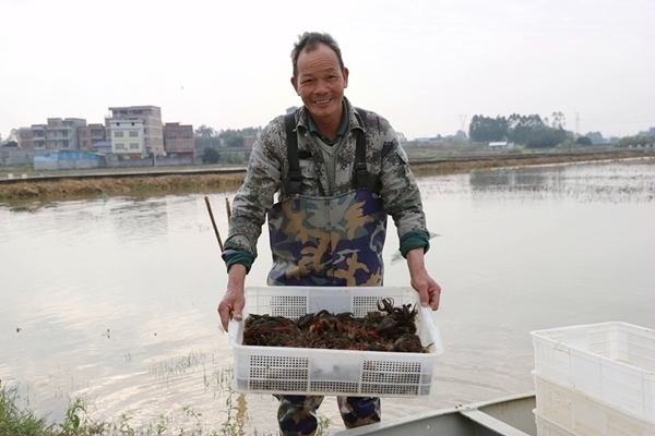 养殖户刚打捞的稻虾。