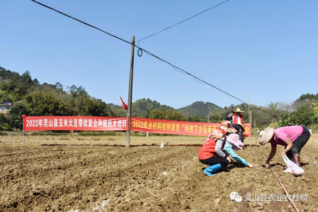 今年灵山县计划推广大豆玉米带状复合种植技术面积1000亩,在全县建立10个示范点,示范面积200亩,以点带面,带动周边农民群众积极种植,助力农民增产增收,促进全县农业农村高质量发展。