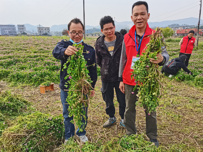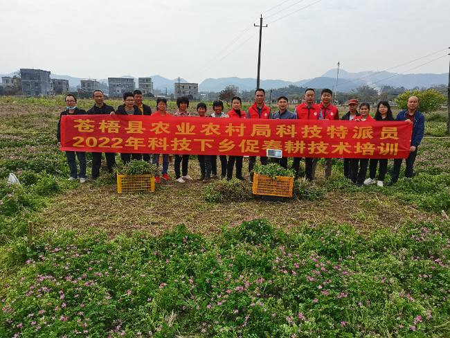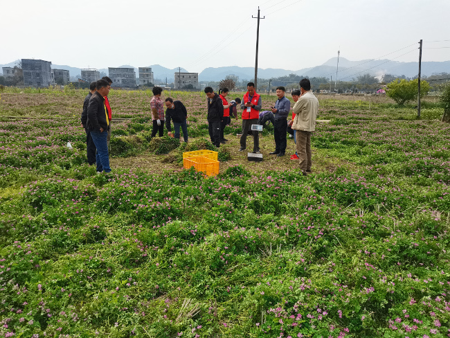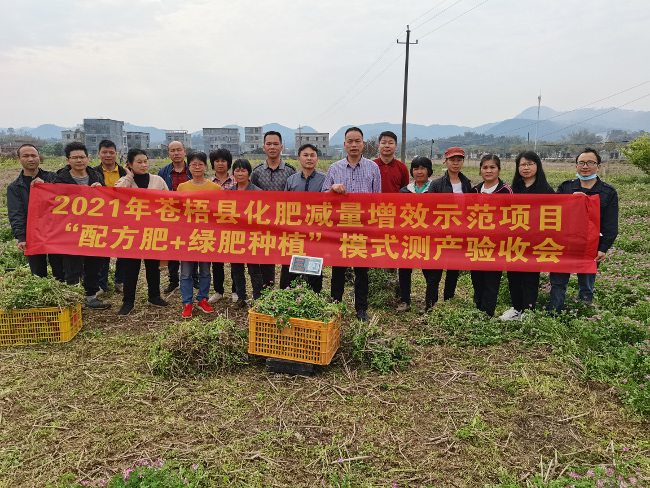 近日,苍梧县农业农村局组织局相关技术人员与石桥、沙头镇农业服务中心相关人员对苍梧的化肥减量增效示范项目“配方肥+绿肥种植”模式进行测产验收,同时现场向群众宣传耕地用养结合观念,减少化肥用量,多使用有机肥和种植绿肥来培肥土壤,确保粮食生产安全。