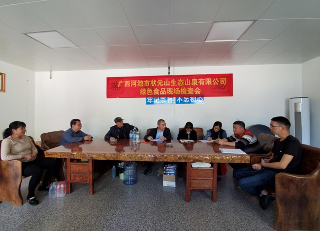 近日,河池市绿色农业发展中心主任管相全、副主任覃向平在宜州区农业农村局相关人员陪同下,深入到广西河池市状元山生态山泉有限公司,实地察看了公司取水水源地三级防护及生产流水线情况,还详细地询问了该公司生产经营管理情况及质量指标管控情况。在该公司召开的绿色食品现场检查会上,管相全宣布通过现场检查,同意进行绿色食品认证,同时强调要完善生产记录,特别是要保存好上级技术部门下来进行质量抽检的记录等有关材料。