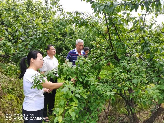 在月柿、梨、李和柑橘种植基地,李科长认真调查了各品种挂果及病虫害发生情况,与种植户交流了解今年生产情况、遇到困难和问题,并开展水果生产技术指导。建议月柿、李、梨等品种及时进行疏果和套袋作业,提高优质果品率;成熟的桃、李适时采收销售;加大绿色防控力度,抢晴或阴天开展药物防控病虫害工作。