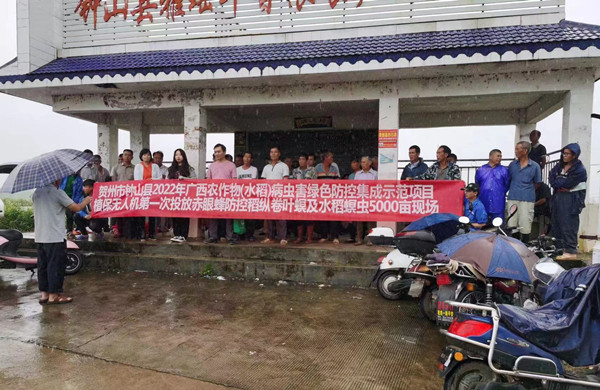 6月14日,钟山县农业农村局在回龙镇钟山县瑶华香粮食产业示范区举办2022年钟山县水稻病虫害绿色防控集成示范项目螟黄赤眼蜂防控稻纵卷叶螟及水稻螟虫技术培训会,并开展第一次利用植保无人机投放螟黄赤眼蜂防控稻纵卷叶螟及水稻螟虫,来自全县水稻种植大户近40人参加培训和观摩。