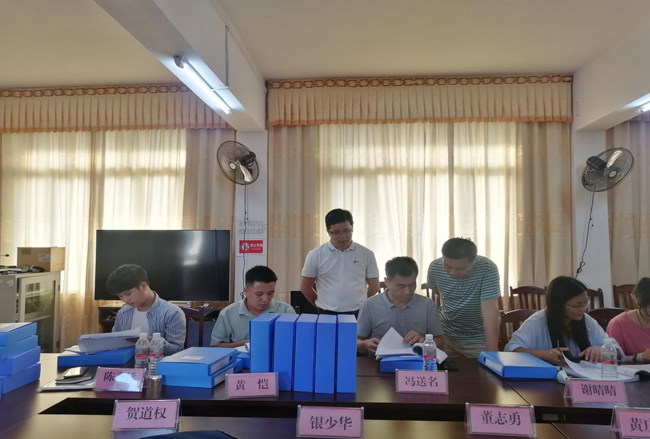 图一:调研检查组查看忻城县创建第三批国家农产品质量安全县档案资料
