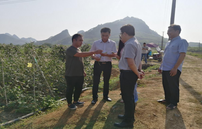 2022年9月1日—2日,自治区农业农村厅农产品质量安全监管处二级调研员冯送名一行6人到来宾市忻城县开展国家农产品质量安全县创建活动调研指导工作,市农业农村局副局长覃春富、忻城县农业农村局局长董志勇等陪同调研。