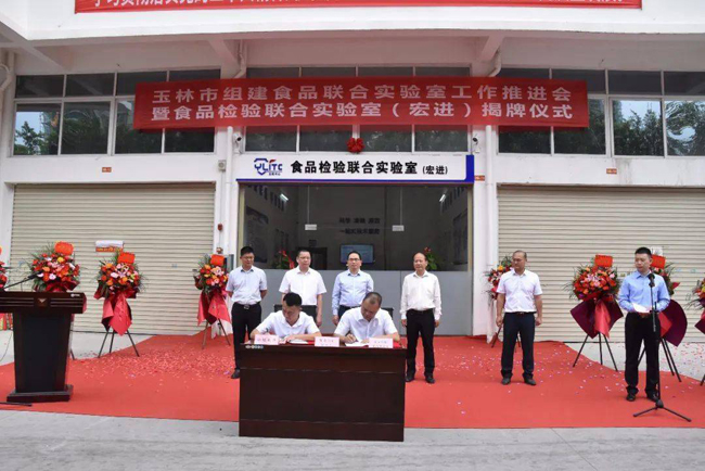 ▲宏进食品检验联合实验室与玉林市市场监管局签订承诺书