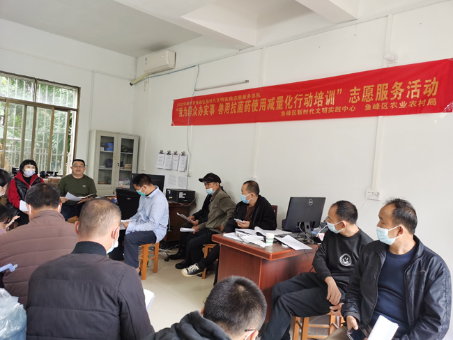 为进一步贯彻落实《自治区农业农村厅关于印发广西壮族自治区规模化养殖场兽用抗菌药使用减量化行动实施方案(2021—2025年)》(桂农厅发〔2022〕144号)要求,稳步推进鱼峰区兽用抗菌药使用减量化行动(简称“减抗行动”),提高畜禽养殖环节兽用抗菌药安全、规范、科学使用的能力和水平,切实加强抗菌药综合治理,促进畜牧业健康发展。11月25日,鱼峰区农业农村局在里雍镇举办兽用抗菌药使用减量化行动培训,辖区官方兽医、规模养殖场、家禽家畜养殖大户共20多人参加了此次培训。