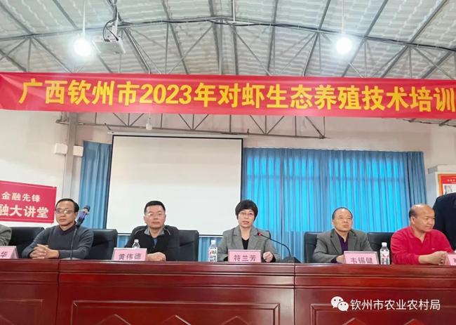 为牢牢把握近年来陆基圆池养殖、小棚养殖等设施渔业快速发展的机遇,交流分享新技术新模式,切实做好我市今年春季对虾养殖生产工作,提高养虾成功率,助农增收、助企增效,推动我市对虾养殖产业高质量发展,日前,市农业农村局联合广西对虾产业联盟、广西虾业协会在钦州召开2023年对虾生态养殖技术培训班。市农业农村局、市水产技术推广站、钦南区农业农村局、自贸区钦州港片区社会事务局、广西对虾产业联盟、广西虾业协会、广西南美白对虾产业创新团队等相关技术人员、养殖户及涉虾企业代表共90人参加培训班。