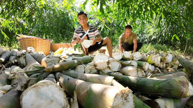 桐村村民采摘竹笋