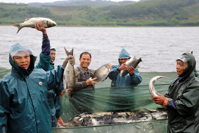 连日来,水晶乡甫上水库每天都有1万斤以上优质鲜鱼销往市场,摆上城乡居民的餐桌。