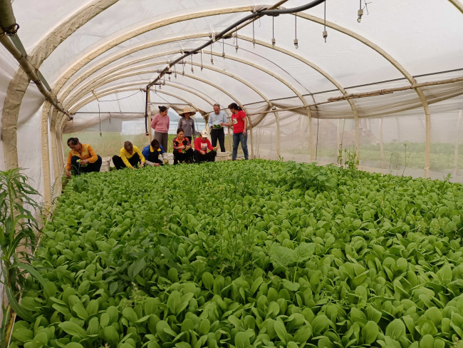覃福成、覃高成是俩兄弟,2021年回乡创办武宣县成顺种植家庭农场。“我们目前已有41个蔬菜大棚,总面积10300平方米,现在是今年收获的第二批叶菜,这一茬叶菜自4月初开卖,由于叶菜色泽光亮、个头匀称、味道鲜美,我们不愁卖,蔬菜销售以县城和周边乡镇为主,价格好,订单供不应求,预计这批菜可收获4万多斤。这两年都以种叶菜类为主,往后将考虑分批次种一些辣椒、茄子、香菜、葱蒜类,一年下来,收入还算可观”。覃福成介绍道。