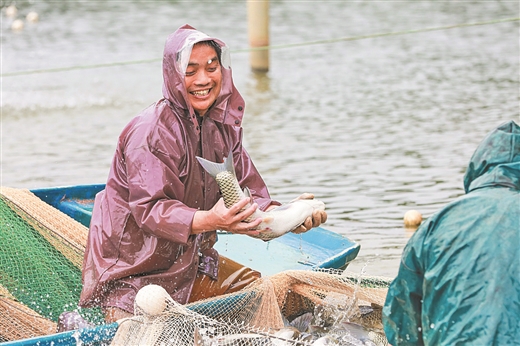 “我们的养鱼模式和传统不一样,不施肥,不用药,完全遵循以水养鱼、以鱼净水的生态养殖模式,实现经济效益和生态效益双丰收。今后我们将通过‘企业+合作社+基地+农户’的模式,联农带农,助力乡村振兴。”看着丰收的鱼儿,基地负责人王区信心满满。