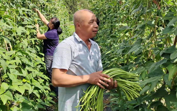 据介绍,今年的无公害豆角品质好,第一季豆角每天可采摘2000斤左右,第一批两车豆角已发往广东,收购价在2元一斤。每年豆角可以种三季,每季产量为10000斤左右,保底收购价豆角2元每公斤,刨除人工及其他费用,每亩可以净收益4000元以上。为进一步发展好豆角种植产业,该基地不仅为周边村民带来季节性的就业岗位,还带动村民发展种植豆角,为他们提供插杆、引蔓、防治病虫害、施肥等种植技术,带领周边群众种植豆角奔上致富路。