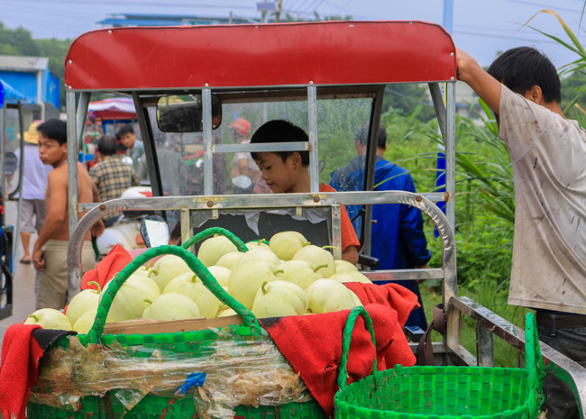 近几个月的每天早晨,收购商会在村口收购农户种植的瓜果蔬菜后,再统一销往东盟农贸集散中心,老百姓种出来的东西不仅能够卖出去,还能卖出较好的价格,实现了农业增效、农民增收的目标。