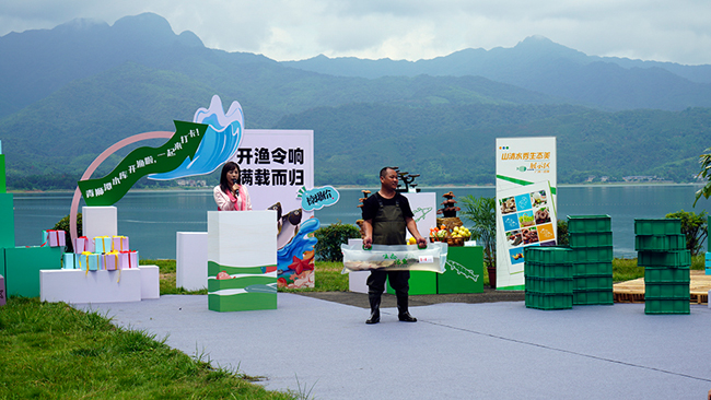 8月15日,是首个全球生态日,灵川县在漓江上游的青狮潭水库举办首届“渔开兆丰年”开渔活动。