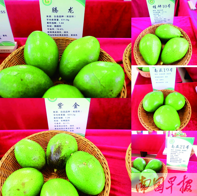 广西产的部分牛油果品种。 郑树芳 摄