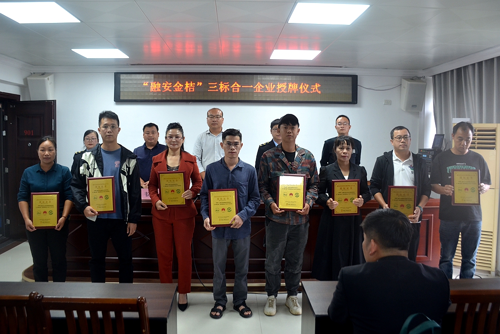 会议为新增14家获得“融安金桔”地理标志“三标合一”授权使用的企业授牌。