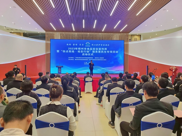 近日,由广西壮族自治区市场监管局、梧州市食安委主办的2023年全国食品安全宣传周梧州市启动仪式暨梧州市创建国家食品安全示范城市“你点我检·桂在行动”服务惠民生专项活动在梧州市举行。