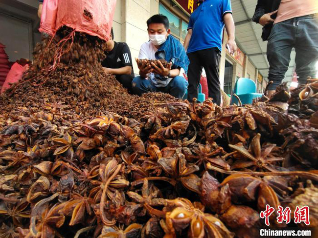 图为香料商人在玉林国际香料交易市场内挑选八角(资料图)。中新网记者黄艳梅 摄