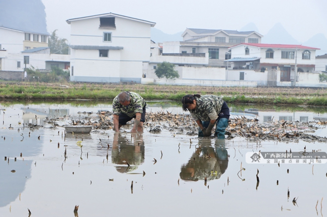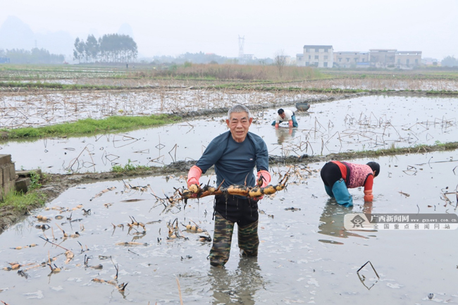 “我今年种植8亩莲藕,现在趁着天气好,抓紧时间挖出藕种再种植,采用人工种植一天能种0.5亩,大概再种20天就能完成。”五九村高田屯藕农覃文出告诉记者,春节过后,大家都抢时开种,早期种植的莲藕在今年5月底就能采收,并且那时候市场需求旺盛,能卖个好价钱。