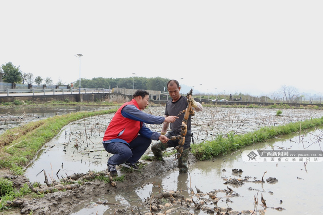 在柳江区百朋镇,藕农们抢抓时节开展莲藕春播春种。王海力 摄