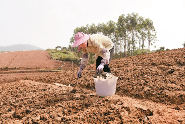 广西农牧绿色食品网讯 在春风和煦的季节里,钦州市钦北区新棠镇的农田呈现出一片忙碌景象。眼下,正值淮山种植的好时节,当地农民正在种植基地忙碌地播种淮山苗,期待着新一年的丰收。