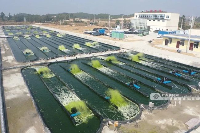 防城港市港口区企沙镇山新村,1200亩跑道养殖池里的微藻不停流动。(广西新闻网资料图)
