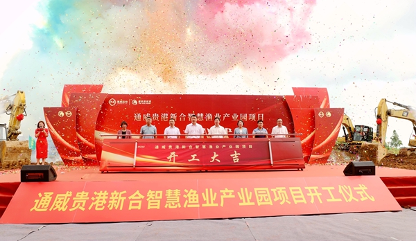 6月19日,通威贵港新合智慧渔业产业园项目开工仪式在港南区桥圩镇新华村举行。