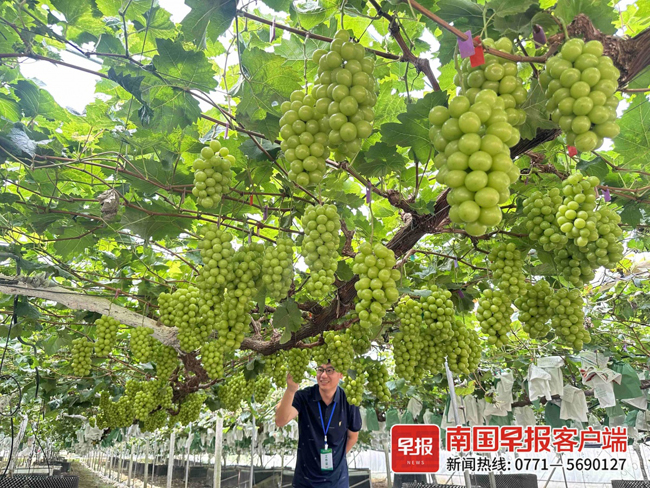 “阳光玫瑰种植要求比较高,没有好的技术种不出它纯正的口感。”广西农科院研究员白先进表示,市场需求是多样化的,现场多个新品种作为阳光玫瑰的后代,在外观和口感上既继承了阳光玫瑰的优点,又相对更早熟,更适合在广西高温高湿的气候条件下种植,品质也更好。