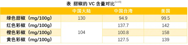 红色、黄色、橙色的甜椒也叫彩椒,它们的VC含量也很高,吃100克也能满足每日的VC需求,详见下表。
