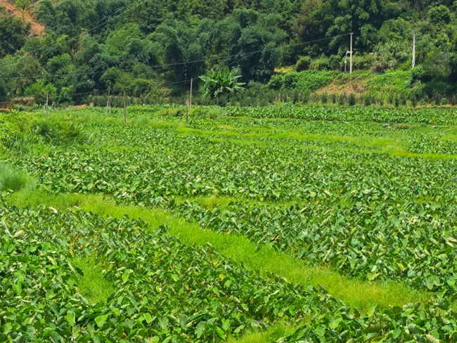 得天独厚的种植环境是基础。大宁镇地处山区,地势东北高、西南低,光照时间长,土质以黄红壤土为主,是香芋种植的适长区。大宁镇充分发挥土地的自然禀赋优势,加快土地流转,盘活闲置土地,引进企业、种植大户发展特色农业种植,带动乡村产业振兴和群众增收致富。合理有效的生态管护是关键。大宁镇农业服务中心工作人员对香芋种植的选地、选种、育种、土壤、水质等严格把关,对施用有机肥、病虫害防治、气象灾害预防等方面提供技术指导,加强农技服务,改变传统化肥种植方式,采用生物有机肥种植,不打农药、不施化肥,真正做到产品无农残,推行合理、有效的科学管理办法,实现基地有效管护。优势互补的政企合作是保障。大宁镇立足本地资源优势,创新发展理念,通过招商引资积极引进广西思奋食品科技有限公司,畅通与广州市农科院、八步区农科所沟通渠道;根据种植、管护实际情况,鼓励基地负责人就近招聘当地村民,让更多群众在“家门口”就业。