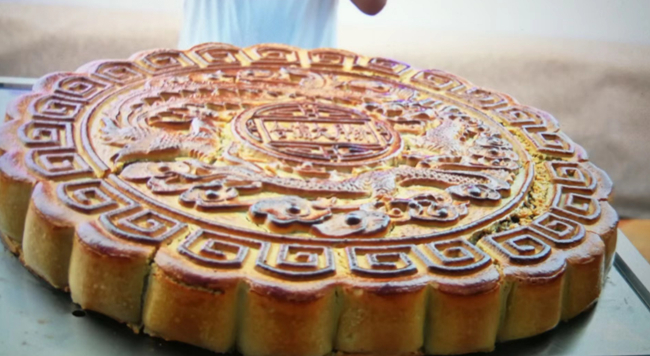 “这个月饼的馅儿是白莲蓉加五仁叉烧,莲蓉细腻可口,五仁叉烧香甜,太好吃了!”陈女士一边品尝大月饼一边在同伴的手机面前进行直播。